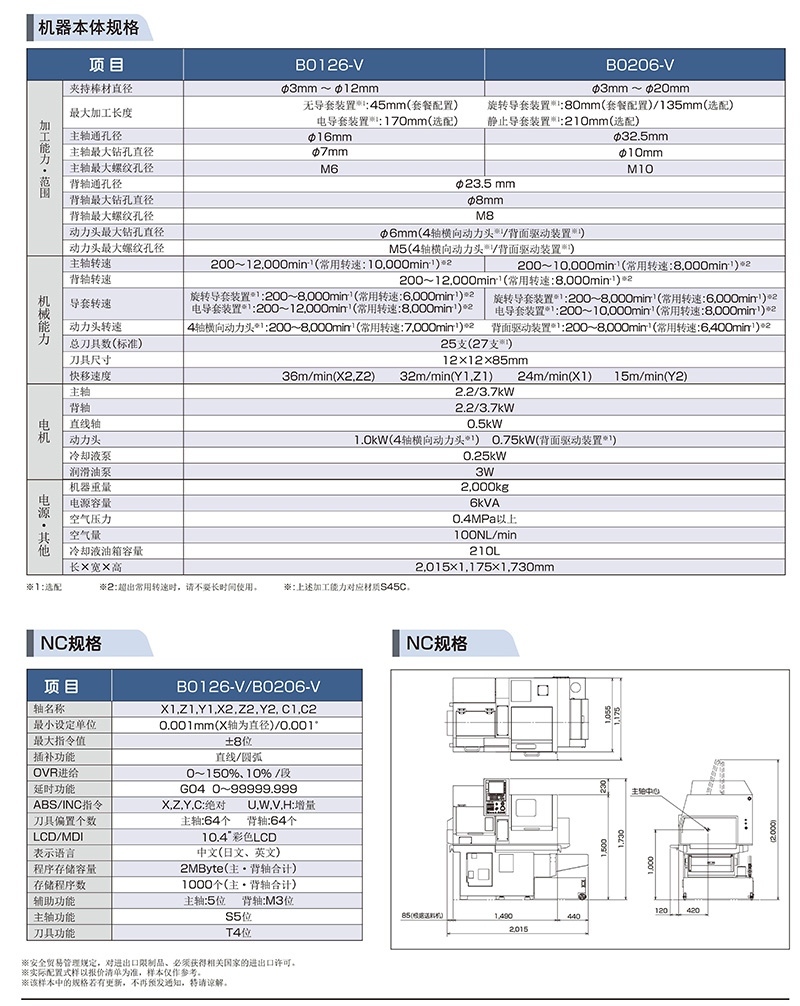 津上CNC走心机 B0126-V和B0206-Ⅴ