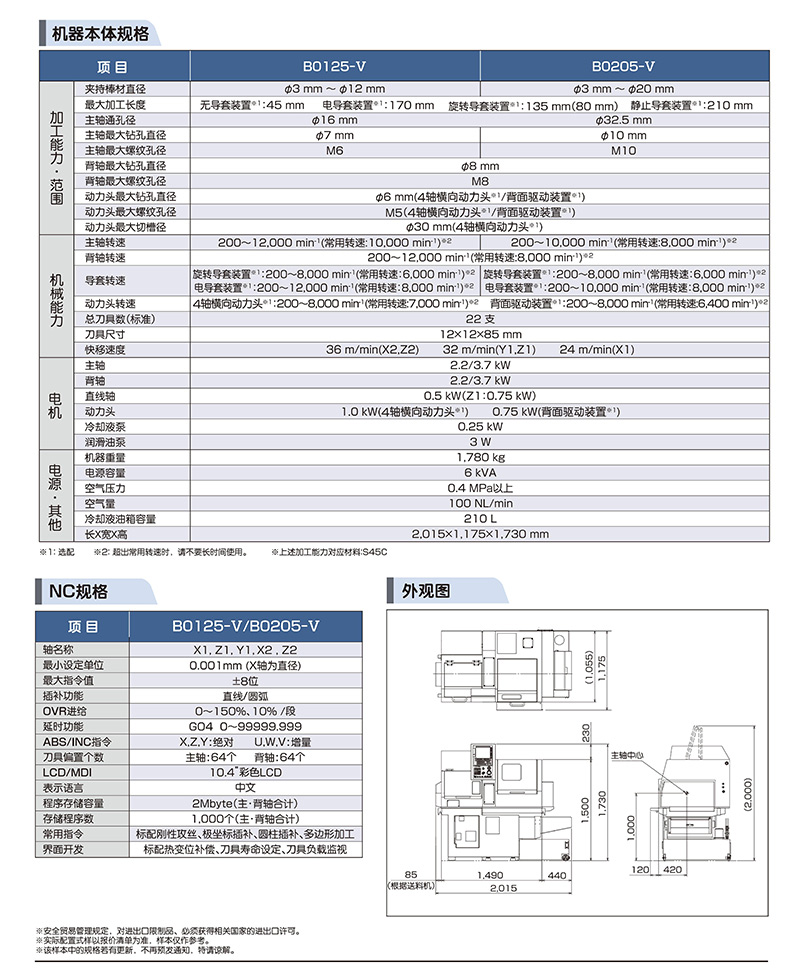 津上CNC走心机 B0125-V和B0205-Ⅴ